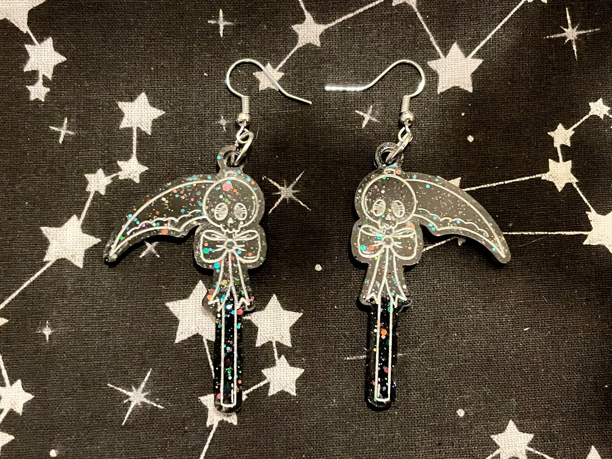 Cute Scythe Earrings! Such a cute accessory for spooky lovers which has been lovingly handmade!