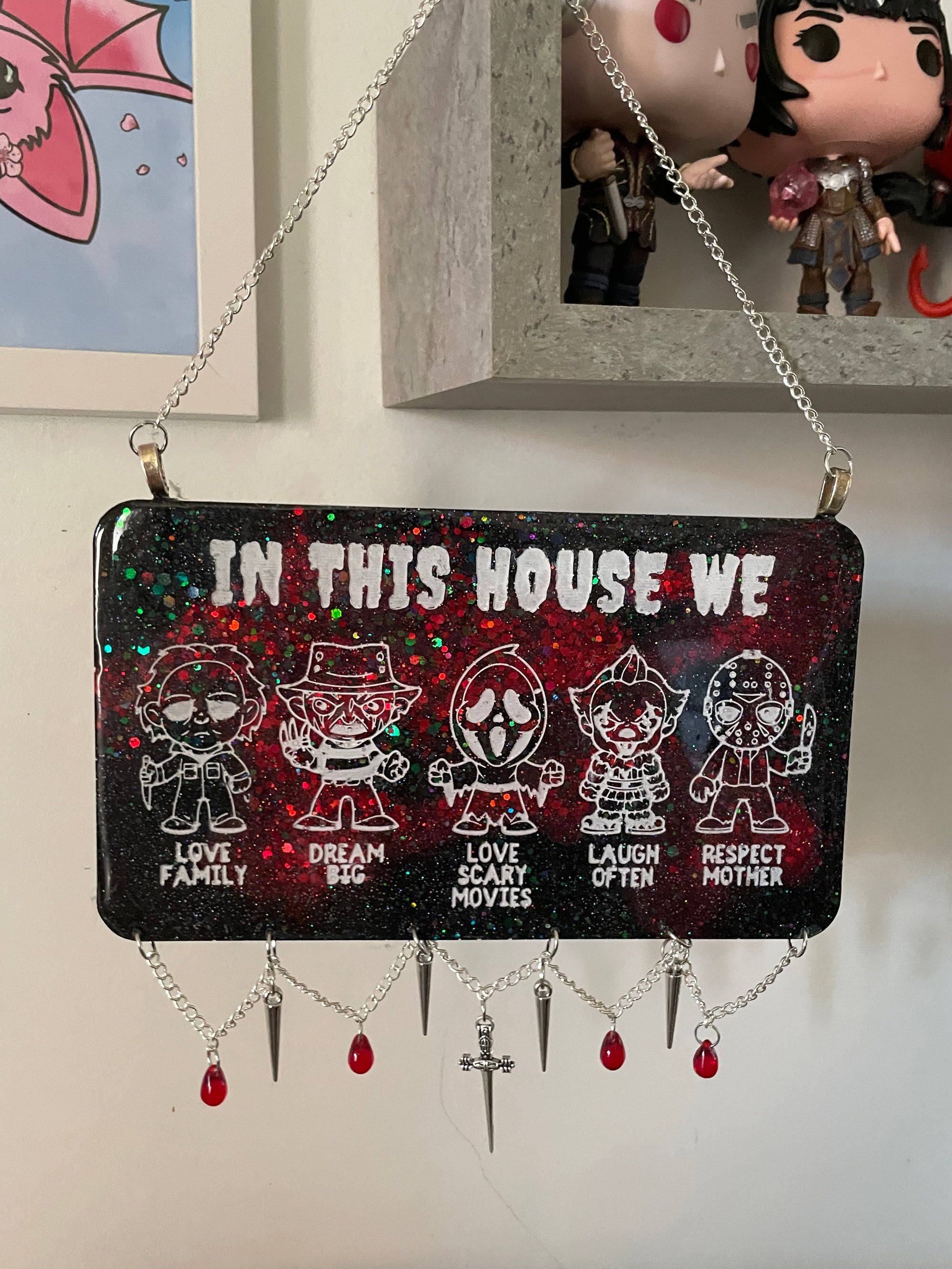Horror Family Wall Hanging! Such a cute accessory for spooky and horror lovers which has been lovingly handmade!