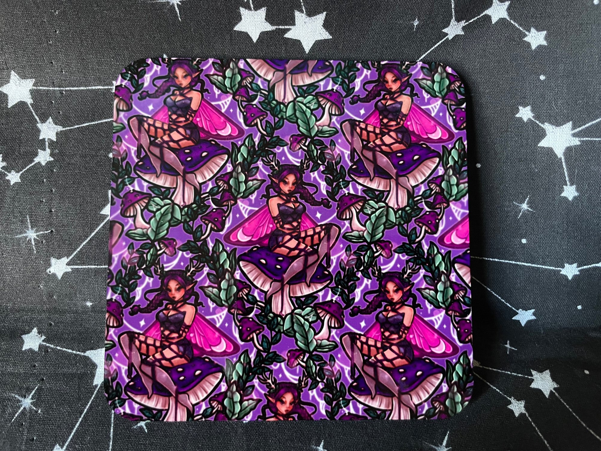 Spooky and Fantasy Coasters! Such a cute accessory for spooky and fantasy lovers which has been lovingly handmade! These are perfect to put your keys on, jewellery and more!All my accessory pieces come in green bubble envelopes to keep the l products safe in cute packaging. If you would like a gift note please let me know.These are made from high quality sublimation blanks and ink! And due to being handmade, there may be minor imperfections. If you like what you see and want to show if it off tag me on Instagram or TikTok! @artbykarlay